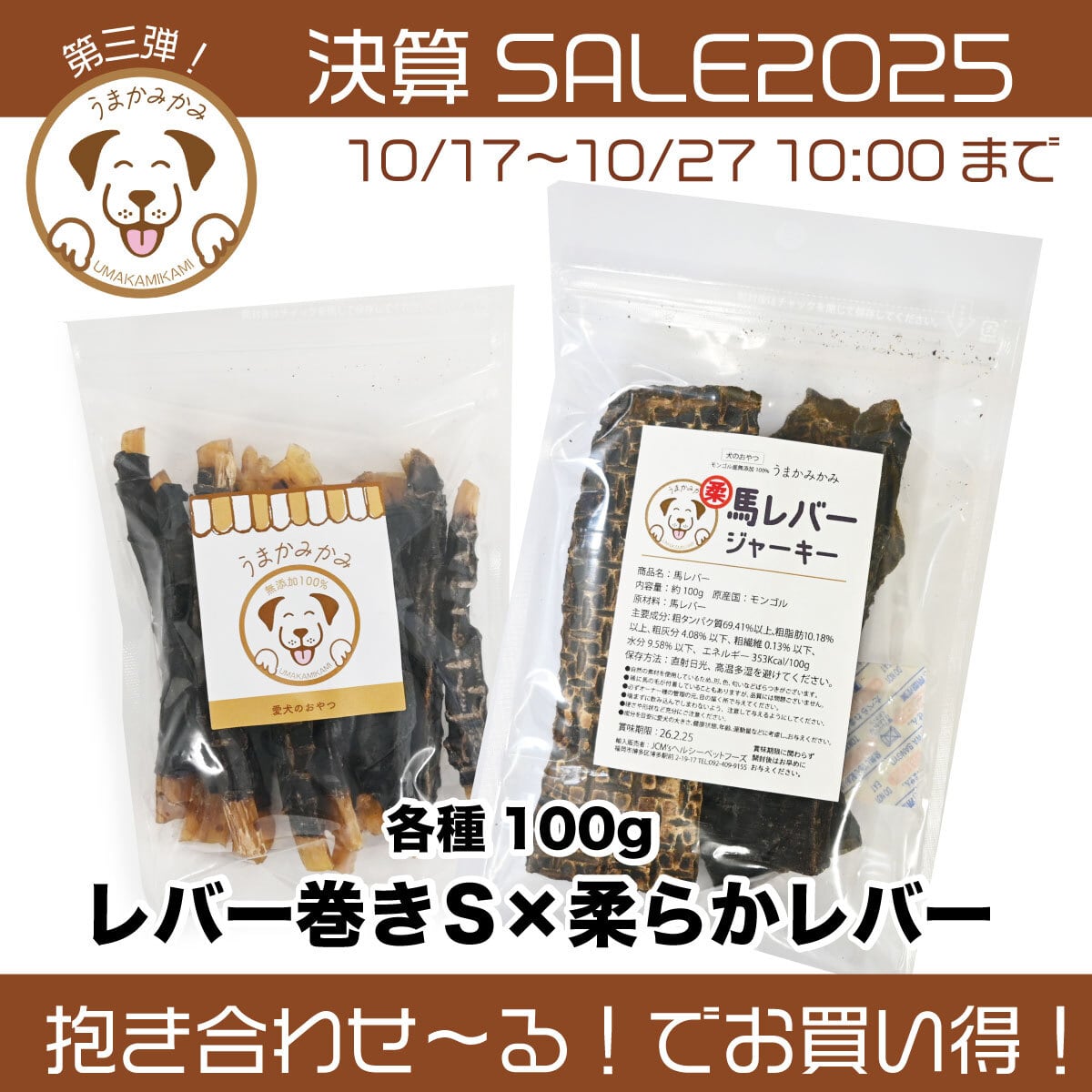 【決算SALE】背筋ガムレバー巻きSと柔らかめレバージャーキー(各100g)[抱き合わせ〜る]