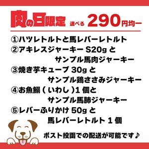 ②アキレスジャーキーSサイズ20gとサンプル馬肉ジャーキー