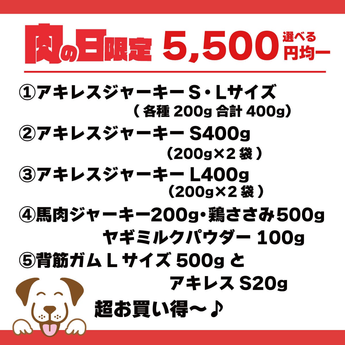 ①アキレスジャーキーS・Lサイズ(各種200g合計400g)