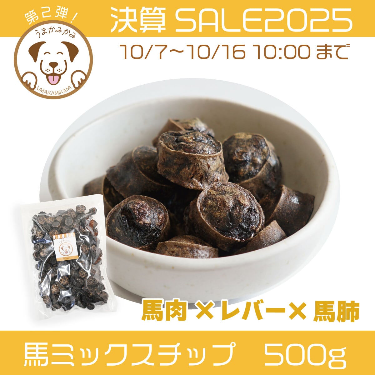 馬肉はタンパク質、アミノ酸、ビタミンB2、ビタミンB12、レバー、目や皮膚を健康に保つビタミンA、また肺はミネラルやビタミンも豊富に含まれているため、ミックスチップは非常に栄養豊富で栄養自体のバランスもよくおすすめです。