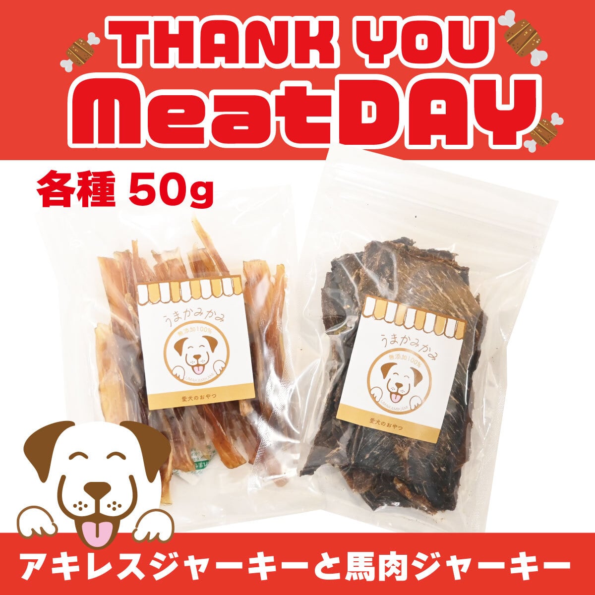 【ミートDAY】アキレスジャーキーSサイズ&馬肉ジャーキー(各種50g)