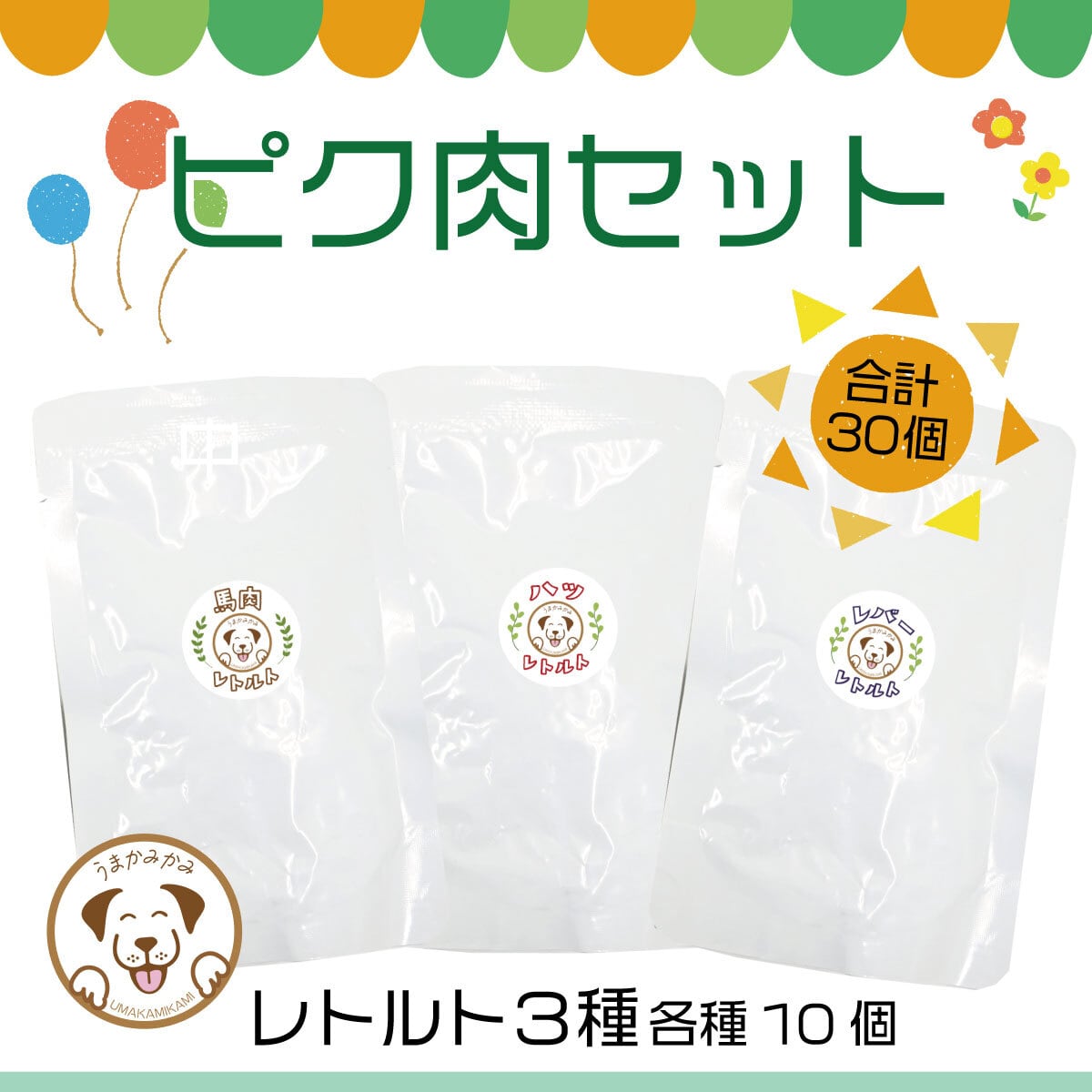 【ピク肉セット】レトルト3種各10個(馬肉・レバー・ハツ合計30個)
